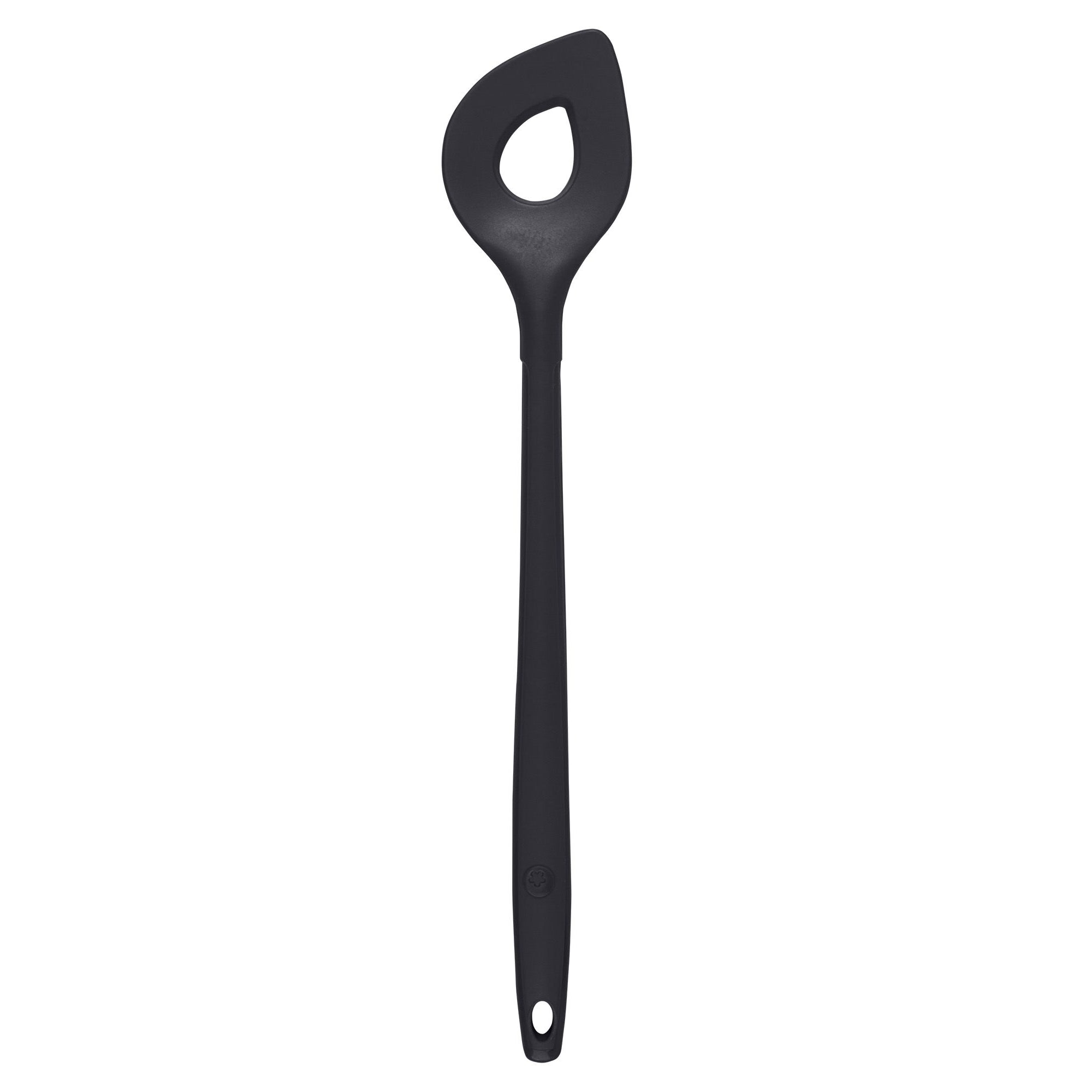 Der Backlöffel aus Silikon erleichtert dir durch seine Form und Stabilität das Rühren von Teig sowie das Kochen in heißen Töpfen. Durch das Loch in der Mitte des Löffels ist er perfekt zum Anrühren von zum Beispiel Kuchenteig geeignet. Die Verwendung eines Edelstahlkerns in Verbindung mit lebensmittelechtem Silikon macht ihn nicht nur unglaublich robust, sondern gibt dir gleichzeitig ein angenehmes Handgefühl. Da die Materialien keine Hitze leiten kannst du ihn ohne Bedenken in deiner Pfanne liegen lassen, ohne dich anschließend am Griff zu verbrennen. Wie alle Küchenhelfer aus Silikon verkratzt der Backlöffel nie wieder deine Pfanne, ist bis zu 230°C hitzebeständig, spülmaschinenfest und in verschiedenen Farben erhältlich.