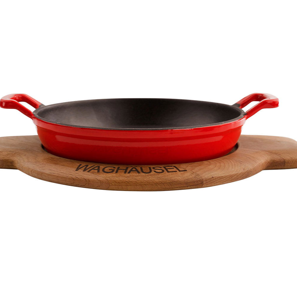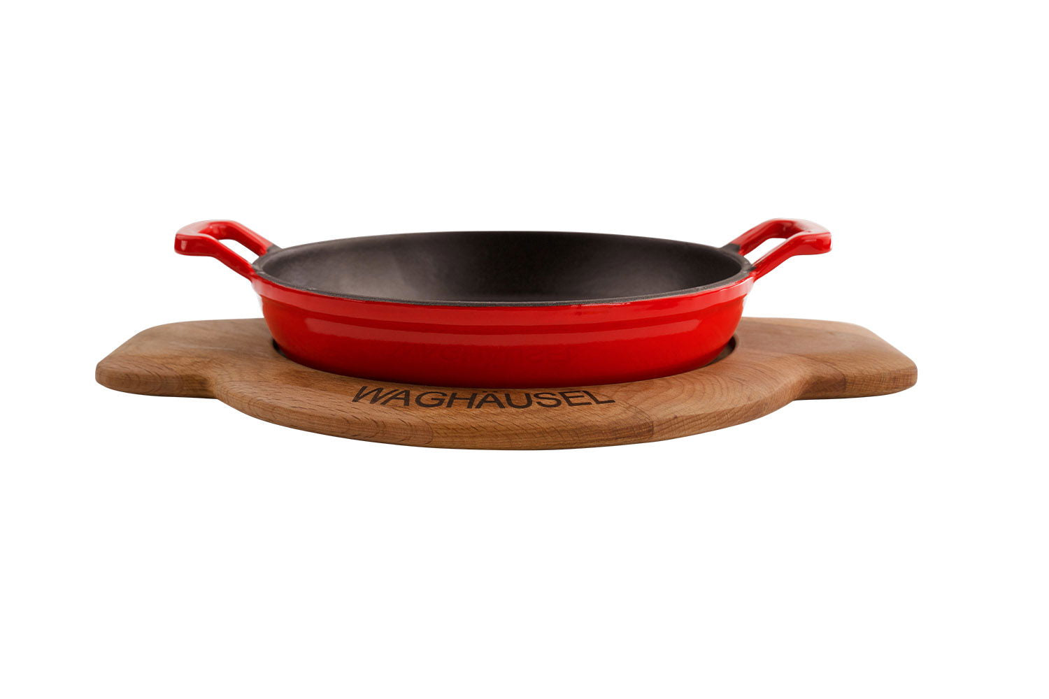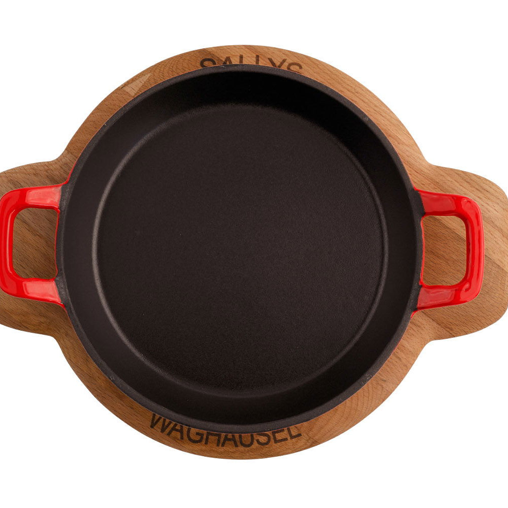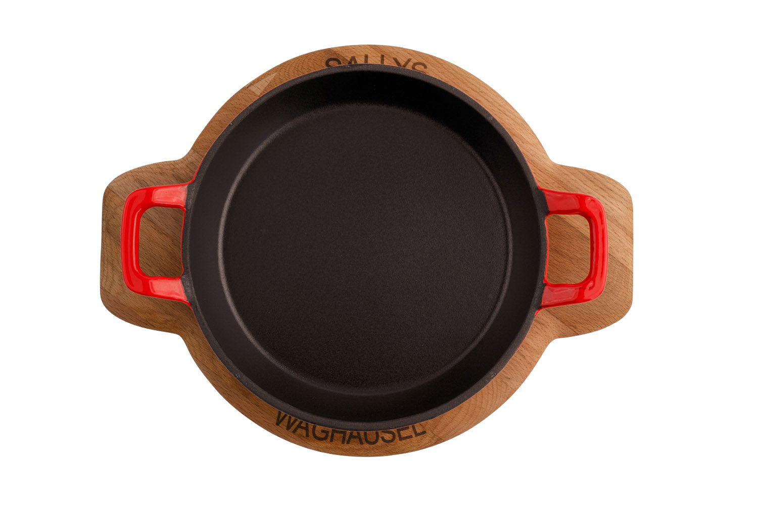 Sallys Gusseisen - Servierpfanne rund Ø 20 cm - mit Echtholzuntersetzer