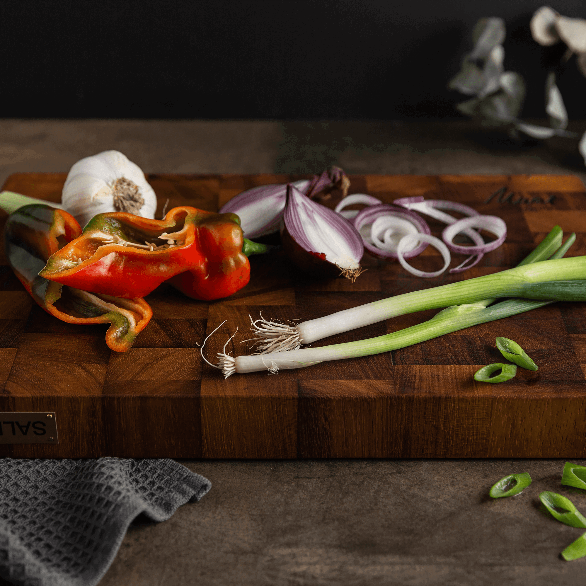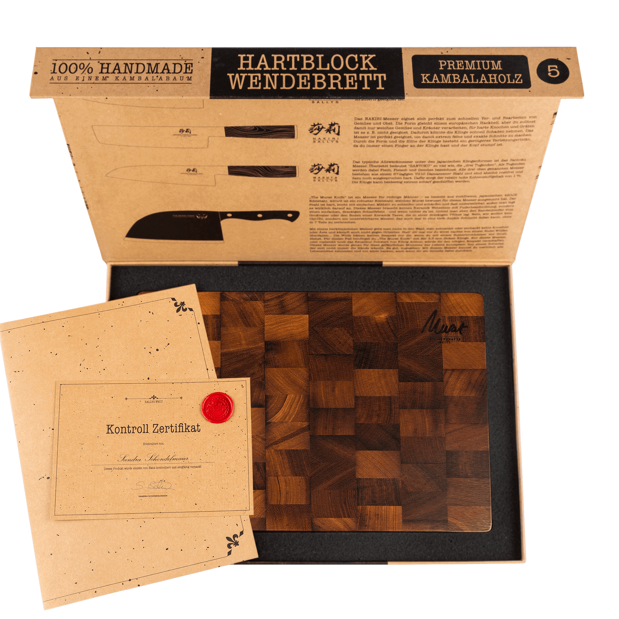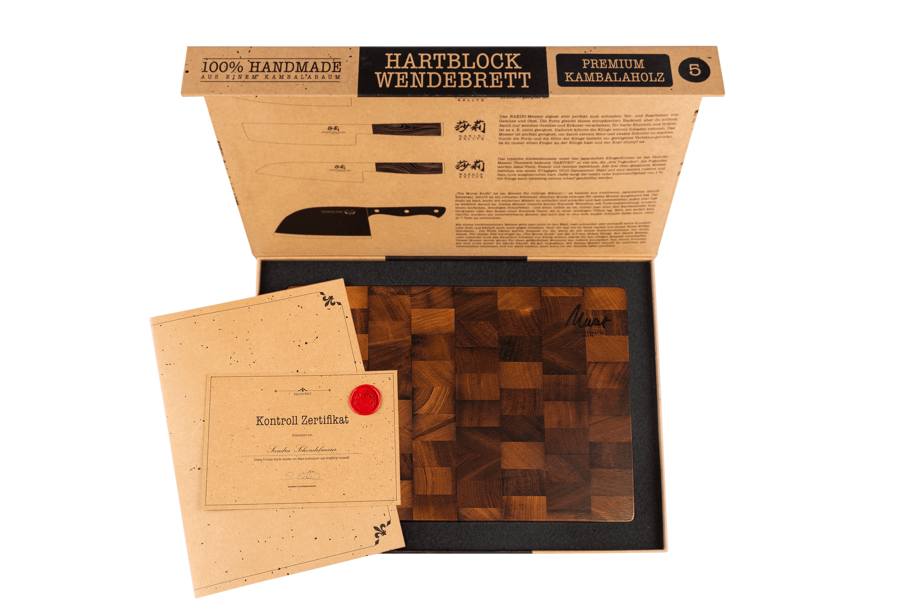 Nachdem Sally im Jahr 2018 erfolgreich ihre Damastmesser-Serie Nakiri, Masuta und Santoku veröffentlichte, kam fast täglich die Anfrage, ob wir nicht auch hochwertige Schneidebretter oder Hartblöcke produzieren könnten, welche den Messern gerecht wären. Also haben wir uns dazu entschlossen, Schneidebretter herzustellen, welche auf der einen Seite nachhaltig und FSC zertifiziert sind, und auf der anderen Seite Design und Funktionalität vereinen. Auf die FSC-Zertifizierung sollte man beim Kauf von Schneidebrettern achten, um die illegale Rodung der Wälder nicht zu unterstützen. Die letzten Jahre haben wir also immer wieder damit verbracht das richtige Material, den richtigen Produzenten und die richtige Form zu finden, um euch das Bestmögliche in der Küche zu bieten.