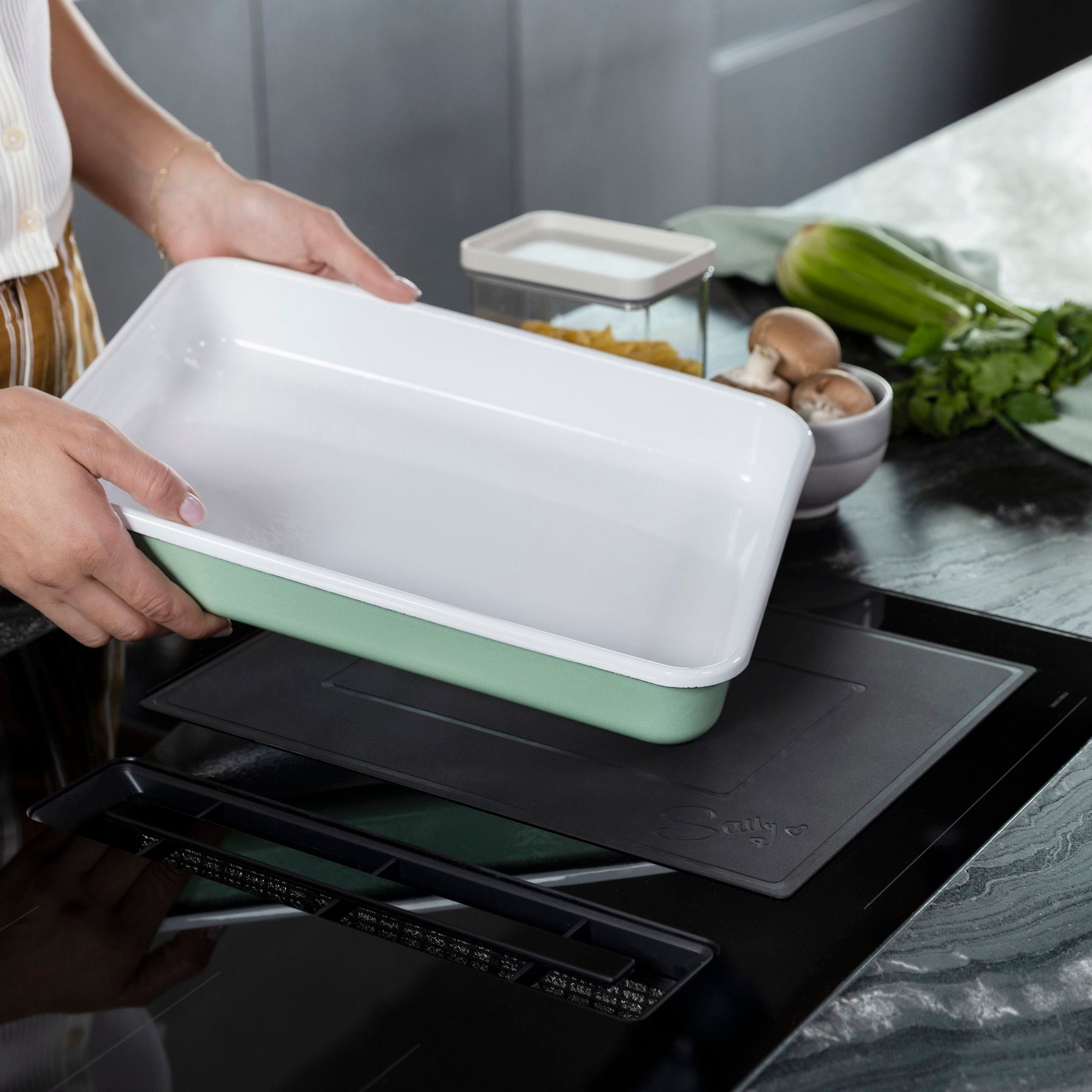 Töpfe und Pfannen werden oft auf dem Induktionsherd hin- und hergeschoben, weshalb hier unweigerlich Kratzer entstehen. Dafür reichen wenige Salzkörner oder Gewürzreste auf dem Herd. Um das zu verhindern, haben wir unsere Induktionsmatte entwickelt, die nur für den Induktionsherd geeignet ist – bitte keinesfalls für andere Herdarten verwenden! Du kannst sie für jegliches Kochgeschirr aller gängigen Größen nutzen, auch für meine Gusseisenprodukte. Die rutschfeste Induktionsmatte aus widerstandsfähigem Platinum-Silikon hält Temperaturen bis zu 230 °C stand und ist spülmaschinen- und mikrowellengeeignet.