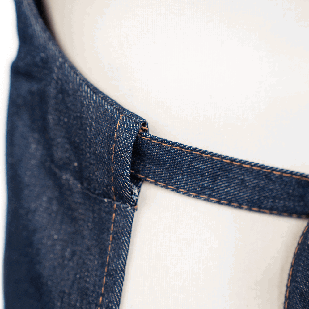 Die bestickte Jeans-Schürze ist hochwertig verarbeitet. Sie besteht aus 100% Baumwolle. Dadurch ist sie sehr langlebig und strapazierfähig.
