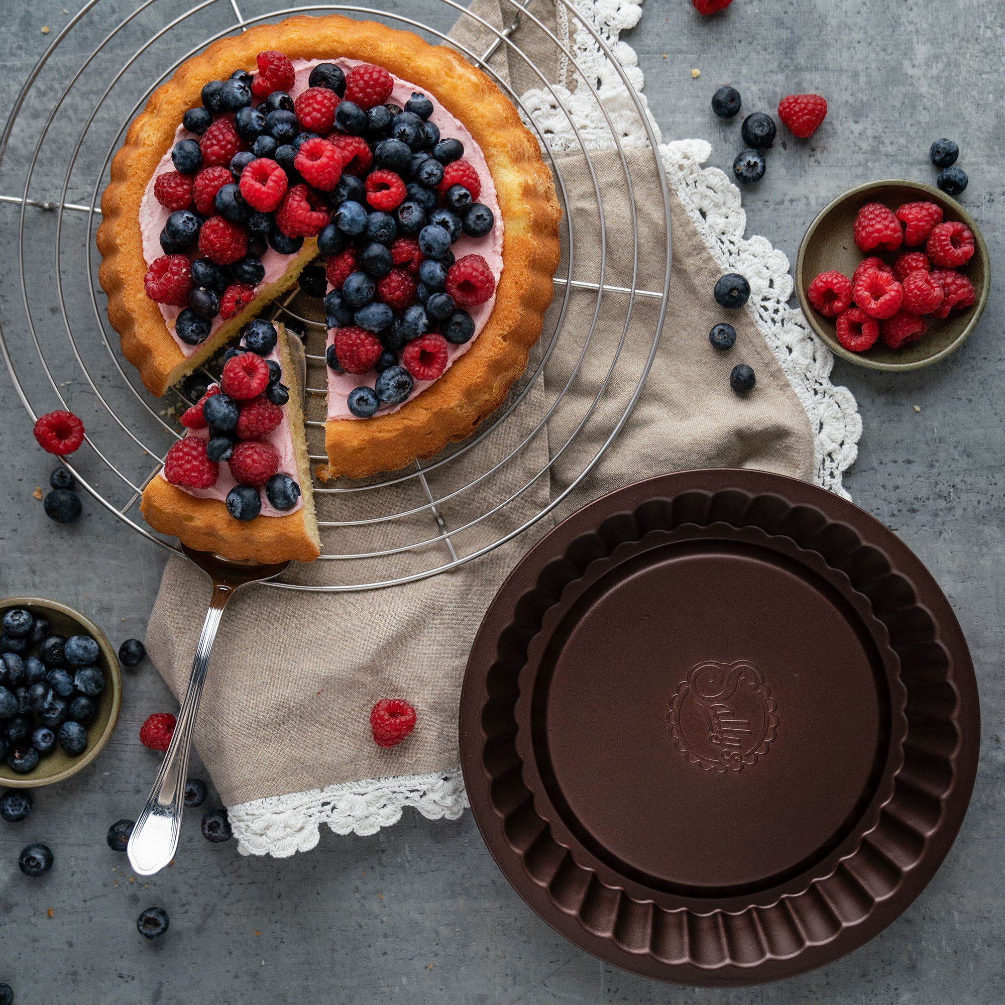 Mit den Obstkuchenformen aus meiner ABGEKUPFERT Serie kannst du leckere Obstkuchen herstellen. Durch die spezielle Antihaftbeschichtung bleibt der Kuchen nicht darin kleben und backt nicht fest.