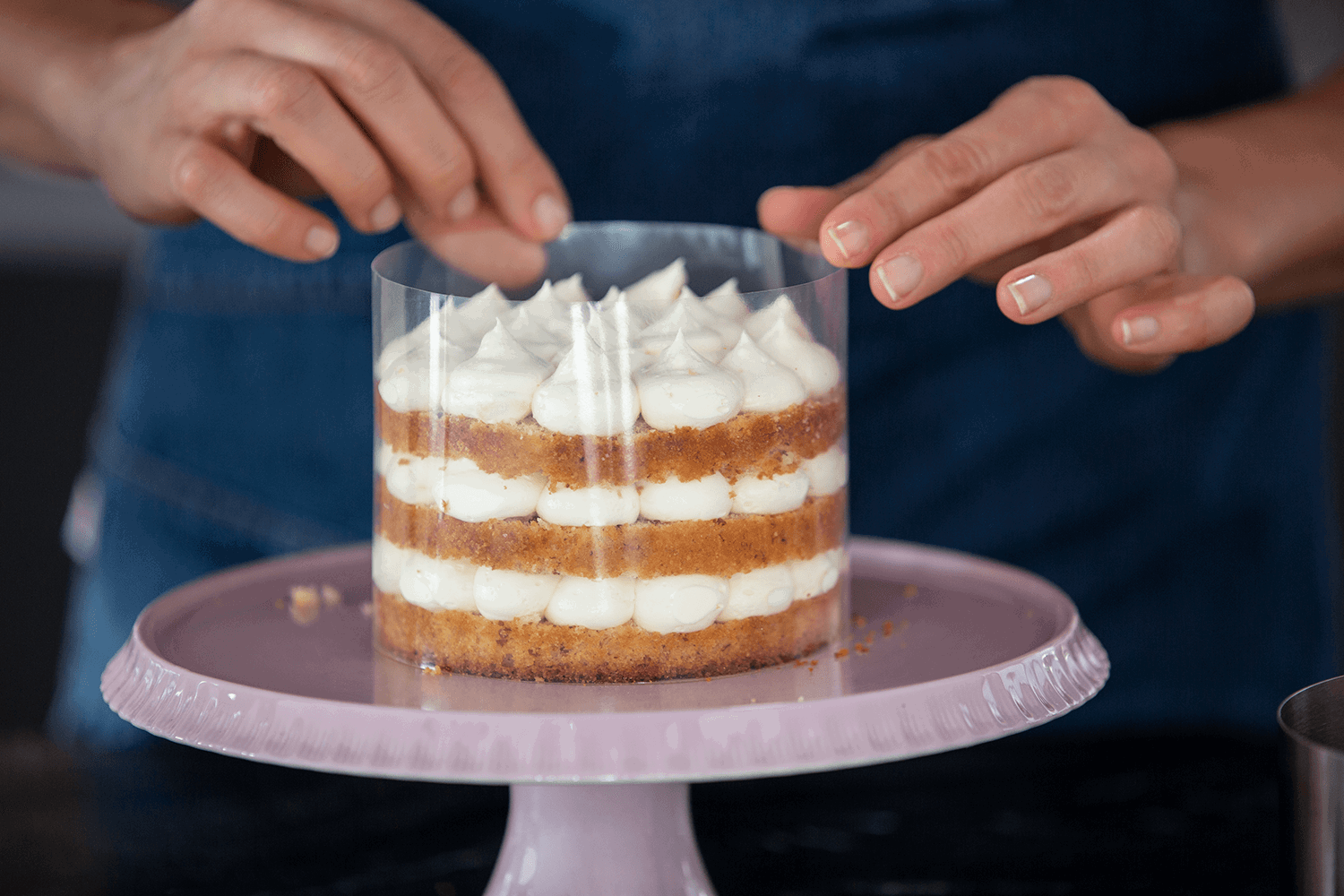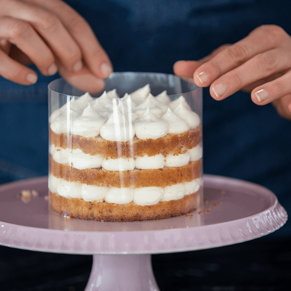 Die Tortenrandfolie ist eine transparente Folie, die zum Füllen von Torten gedacht ist, deren Rand perfekt glatt sein sollen.