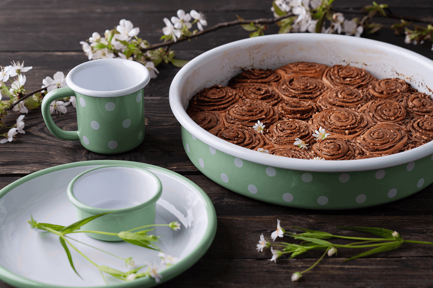 Wusstest du, dass Emaille-Geschirr äußerst ökologisch und nachhaltig ist? Bei der Herstellung werden nur natürliche Rohstoffe verwendet. In einem aufwändigen Verfahren wird die Eisenform des Geschirrs bei 850 °C mit einer Glasschichtüberzogen. Diese Beschichtung sorgt dafür, dass das Geschirr absolut lebensmittelecht, geschmacks-und geruchsneutral ist. Der Metallkern verteilt und speichert die Hitze optimal, so dass du wirklich energieeffizient kochen, braten,backen und nebenbei noch Geld sparen kannst. Außerdem ist Emaille-Geschirr sehr langlebig, strapazierfähig und 100% recyclebar.