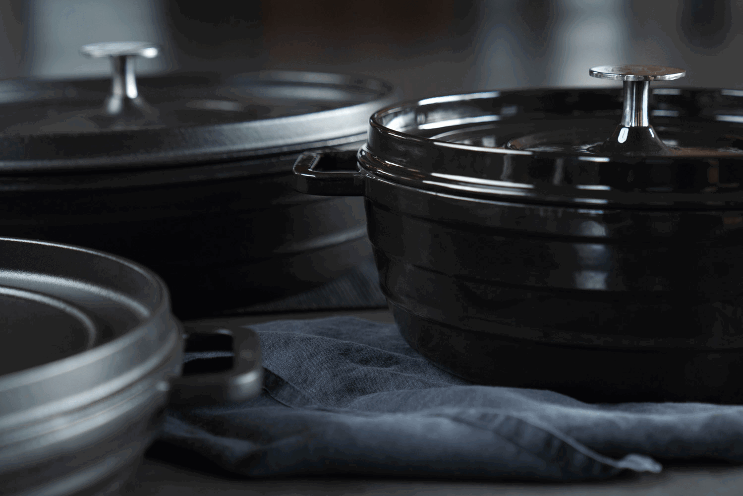 Gusseisen wird schon seit Jahrhunderten als Koch- und Backgeschirr verwendet. Damals wurde der Topf einfach über das offene Feuer oder auf die heiße Kohle gestellt. Heutzutage kann man ihn auf allen Herdarten, inklusive Induktion und sogar im Backofen benutzen. Gusseisen ist sehr hitzebeständig und hält Temperaturen von mehreren hundert Grad aus. Das ist natürlich perfekt - so bekommt man tolle Röstaromen! Das starke Material eignet sich dennoch nicht zum „schnellen“ Kochen, da es die Wärme langsam annimmt. Dafür speichert es die Hitze optimal und für einen langen Zeitraum und gibt sie perfekt an das Gargut wieder ab.