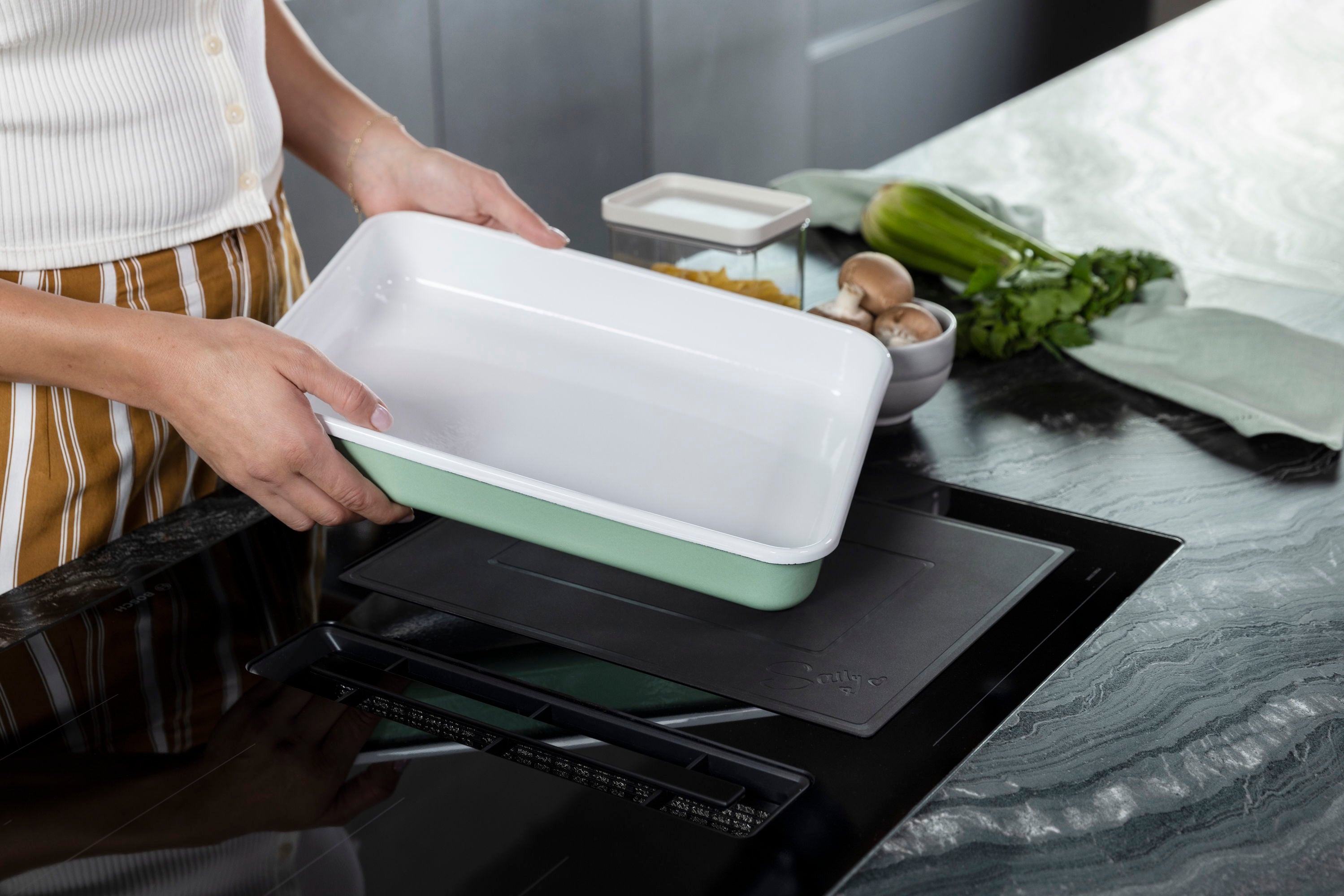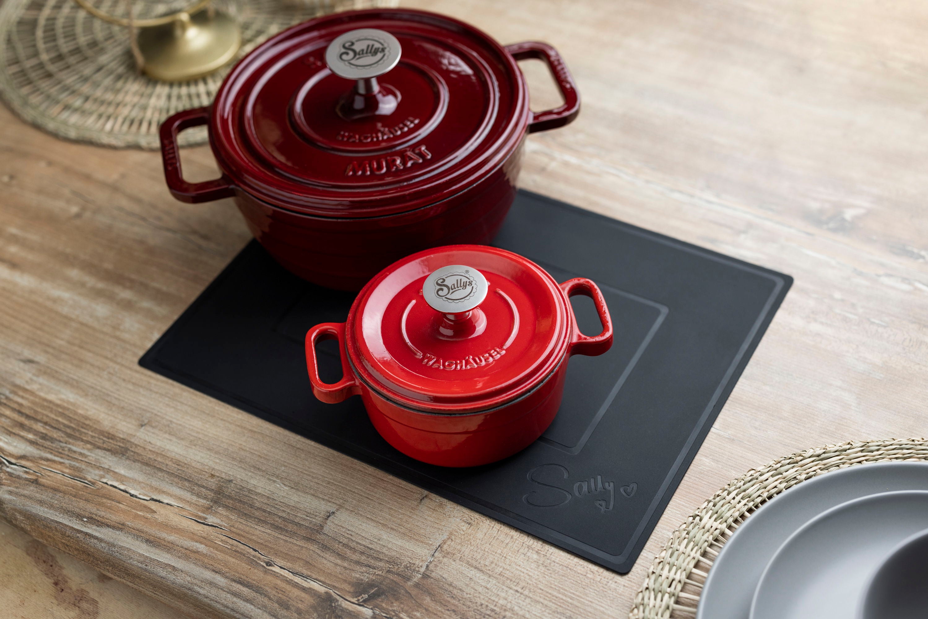 Töpfe und Pfannen werden oft auf dem Induktionsherd hin- und hergeschoben, weshalb hier unweigerlich Kratzer entstehen. Dafür reichen wenige Salzkörner oder Gewürzreste auf dem Herd. Um das zu verhindern, haben wir unsere Induktionsmatte entwickelt, die nur für den Induktionsherd geeignet ist – bitte keinesfalls für andere Herdarten verwenden! Du kannst sie für jegliches Kochgeschirr aller gängigen Größen nutzen, auch für meine Gusseisenprodukte. Die rutschfeste Induktionsmatte aus widerstandsfähigem Platinum-Silikon hält Temperaturen bis zu 230 °C stand und ist spülmaschinen- und mikrowellengeeignet.