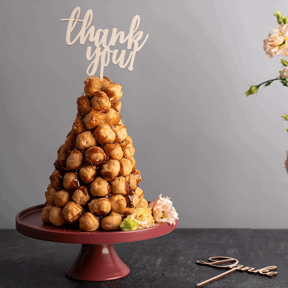 Die Tortendekorationen aus hellem Holz haben eine feine Maserung und bringen einen ländlichen, rustikalen Stil mit sich. So erscheinen die Sprüche ideal für feierliche Anlässe und Hochzeiten im Vintage-Look. Ihr könnt die Caketopper auch einfach in eurer Wunschfarbe selbst anstreichen oder lackieren. Sie sind problemlos wieder verwendbar.