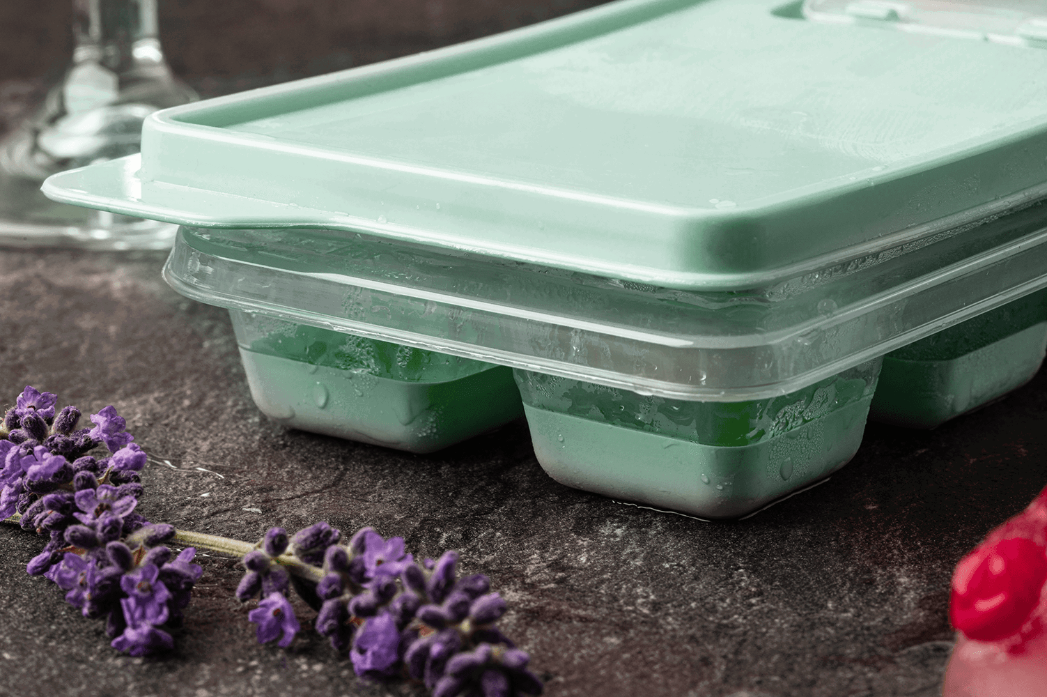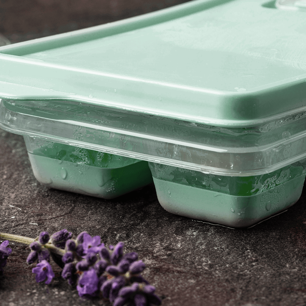 Die Eisformen mit dem verschließbaren Deckel verwende ich nicht nur, um Wasser zu gefrieren, sondern auch für Säfte, Kaffee oder andere Getränke. Darin lassen sich wunderbar Lebensmittel wie Tomaten- oder Paprikamark, Butter, Hefe, Babynahrung, Kräuter oder Brühe portioniert einfrieren oder auch Eiskonfekt und Schokoladenpralinen herstellen. Durch den weichen Silikonboden lassen sich die gefrorenen Lebensmittel einfach herausdrücken.