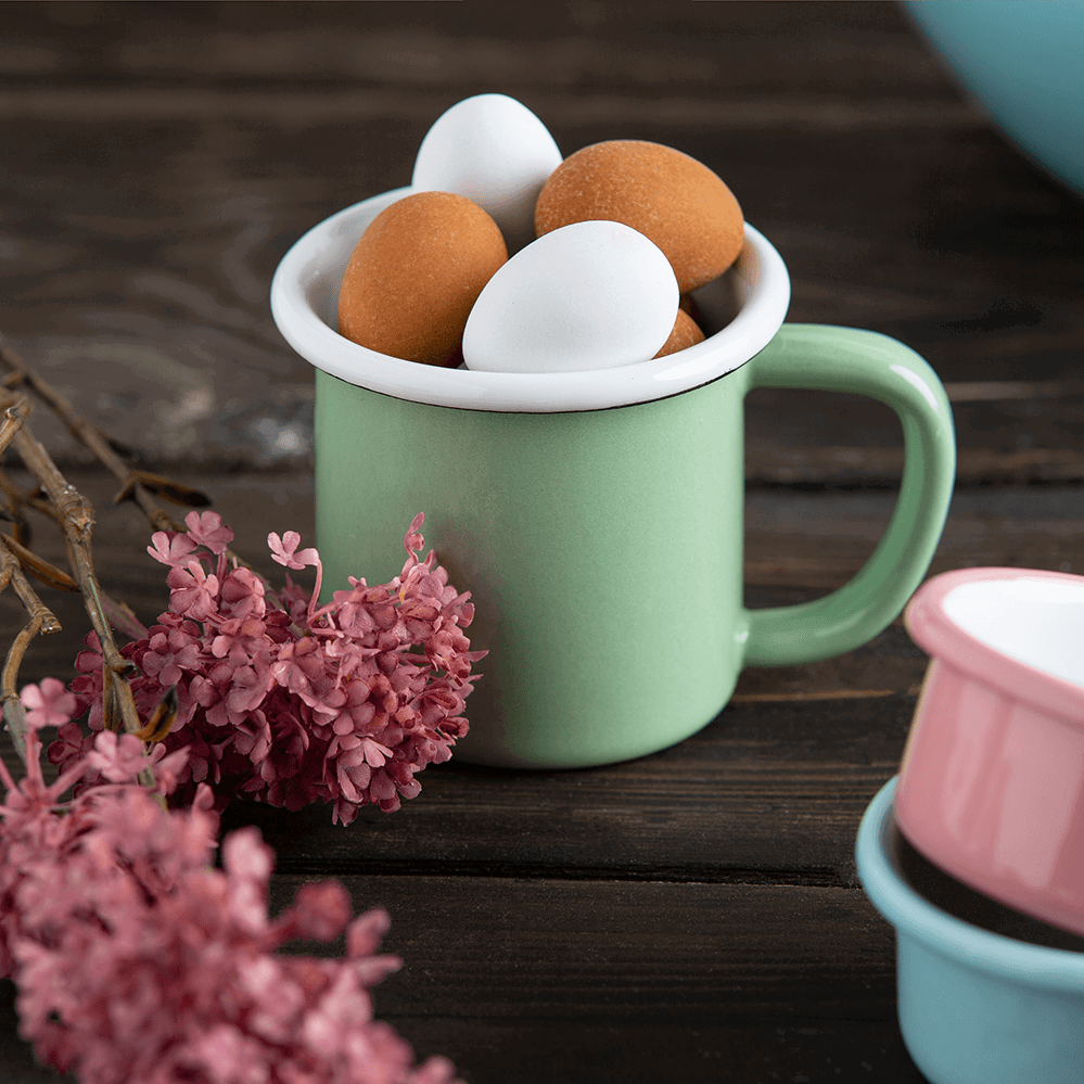 Wusstest du, dass Emaille-Geschirr äußerst ökologisch und nachhaltig ist? Bei der Herstellung werden nur natürliche Rohstoffe verwendet. In einem aufwändigen Verfahren wird die Eisenform des Geschirrs bei 850 °C mit einer Glasschicht überzogen. Diese Beschichtung sorgt dafür, dass das Geschirr absolut lebensmittelecht, geschmacks- und geruchsneutral ist. Der Metallkern verteilt und speichert die Hitze optimal, sodass du wirklich energieeffizient Kochen, Braten, Backen und nebenbei noch Geld sparen kannst. Außerdem ist Emaille Geschirr sehr langlebig, strapazierfähig und 100% recyclebar. In meiner Familie hat das Kochen und Backen mit Emaille-Geschirr Tradition und diese Tradition möchte ich wieder aufleben lassen. Meine Tasse wird in der Türkei komplett aus natürlichen Materialien gefertigt. Sie wird dich mit ihrer rostfreien und robusten Oberfläche, ihrer Langlebigkeit und der leichten Reinigung überzeugen. Spüle das Geschirr bitte mit der Hand, damit du lange Freude damit hast.- Durchmesser ca. 7 cm, Höhe ca 8 cm