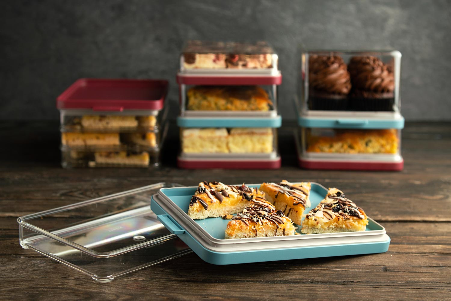 Gerade im Kühlschrank muss Ordnung sein, da Kühlschränke der Erfahrung nach immer zu klein sind. Offene Lebensmittel lagere ich hier nicht, weil sich der Geruch schnell verbreitet und im Kühlschrank festsetzt. Meist sind Lebensmittel, welche verschlossen gelagert werden, auch länger haltbar. In diesen Kühlschrankdosen kannst du Wurst, Käse, Aufschnitt, angebrochene Lebensmittel, Obst und Gemüse lagern und siehst direkt auf einen Blick, was du noch im Kühlschrank hast. Besonders gut eignen sie sich auch als Kuchen- oder Tortenbehälter. Dafür lege ich das Kuchen- oder Tortenstück auf den Deckel der Dose und verschließe die transparente Dose darüber. Die Behälter lassen sich optimal stapeln, so dass im Kühlschrank nichts verrutscht.