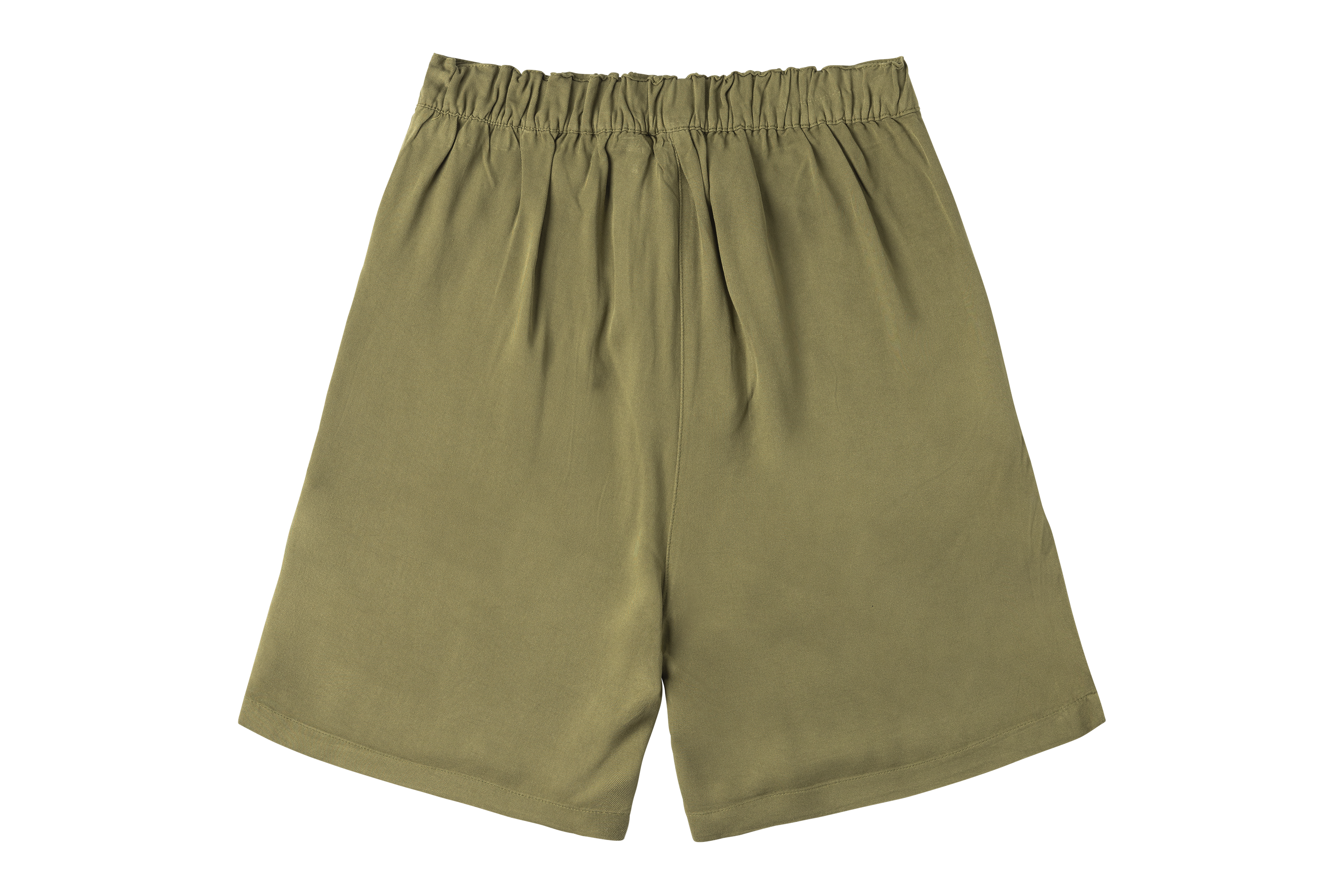 Bequeme, kurze Hose mit elastischem Bund, erhältlich in Khaki und Schwarz.