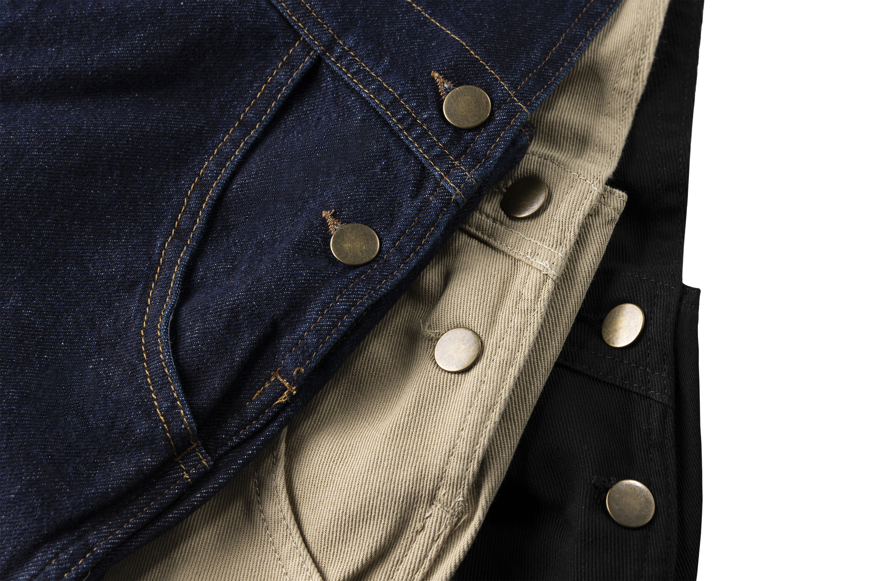 Latzhose aus 100% Bio-Baumwolle mit langen Hosenbeinen - in Beige, Schwarz und Denim erhältlich.