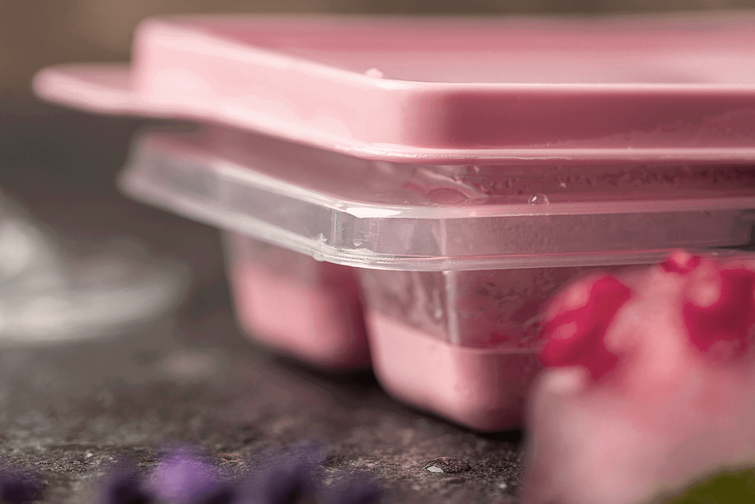Eine pinke Eiswürfelform für quadratische Eiswürfel