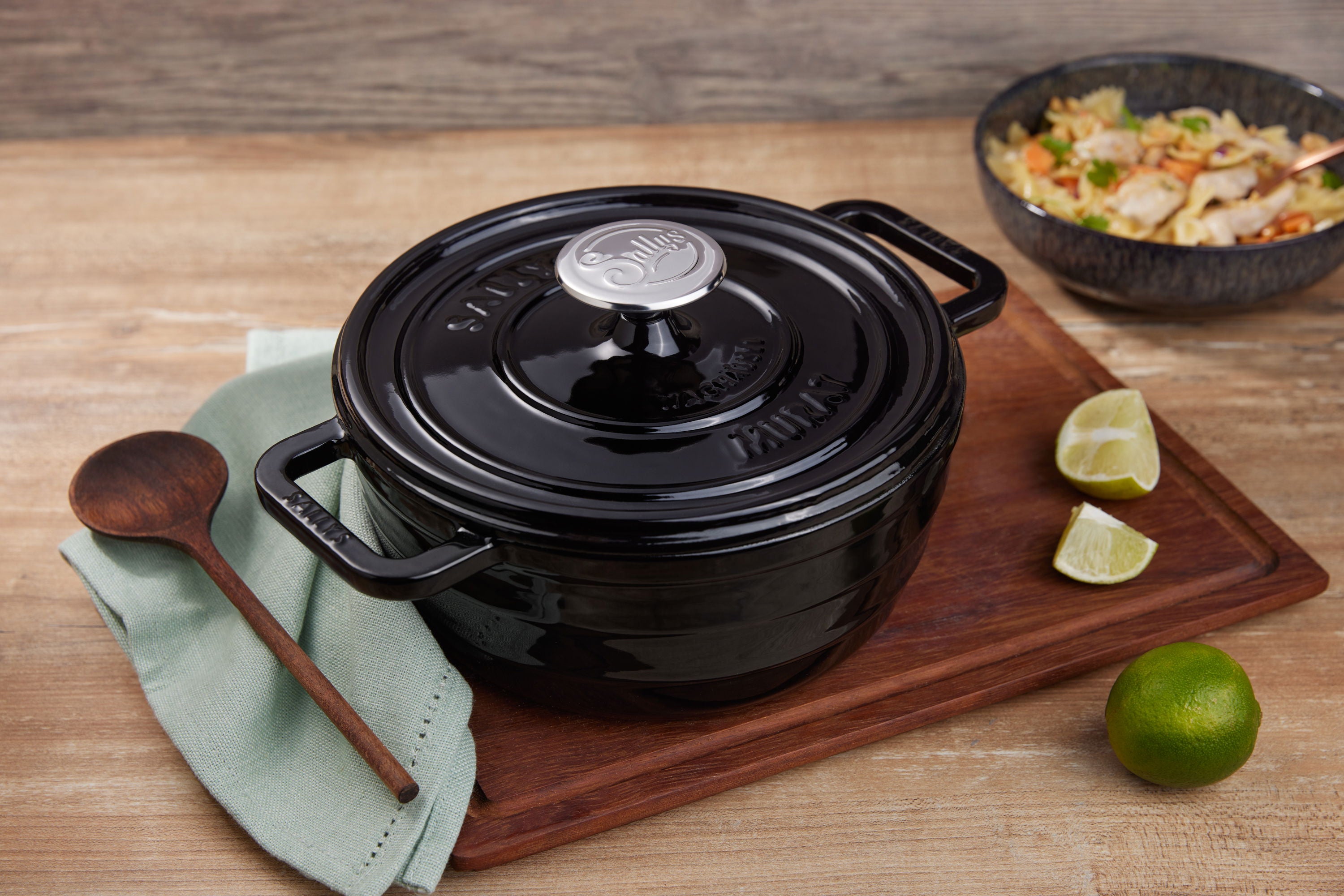 Deshalb ist es auch ausgesprochen gut für Schmorgerichte geeignet - zum langsamen Kochen oder Schmoren bei niedrigen Temperaturen. So bleiben der Geschmack, die Vitamine und auch die Nährstoffe erhalten. Durch die gleichmäßige Wärmeverteilung wird das Gargut auch rundum perfekt und gleichmäßig erhitzt. Gusseisen ist ein natürliches Material und wird mit einer Glasschicht, der Emaille, überzogen. Im Inneren des Topfes befindet sich eine matte Emaillierung, die für perfekte Röstaromen sorgt. Der gusseiserne Topf ist extrem robust, langlebig, vielseitig und einfach per Hand zu reinigen - ein ehrliches Material eben. Ich bereite darin gerne Schmorgerichte, Eintöpfe und Brot zu - aber auch andere Gerichte lassen sich darin hervorragend zubereiten.