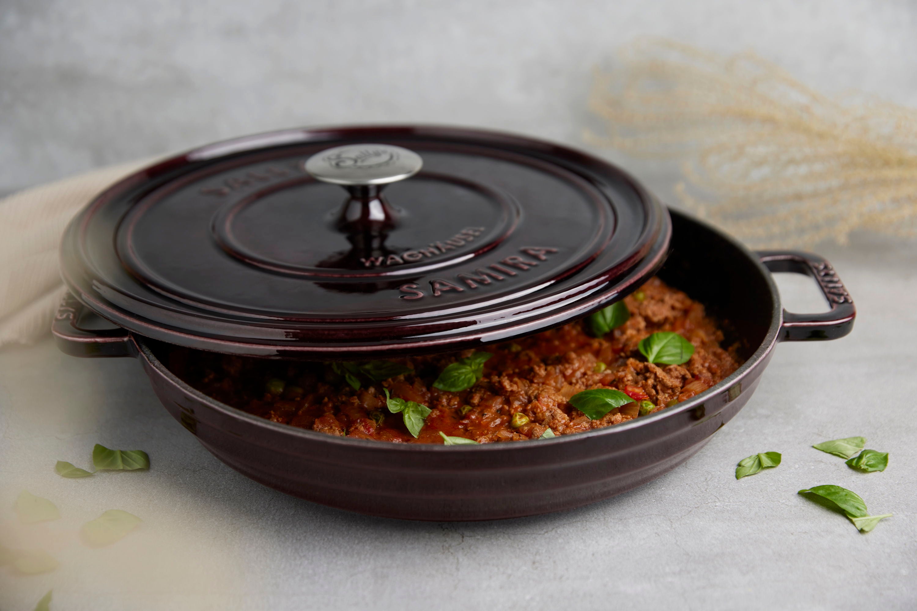 • Hohe Pfanne für flache Gerichte wie Lasagne, Ofengemüse, Fleischgerichte, große Braten u. v. m.