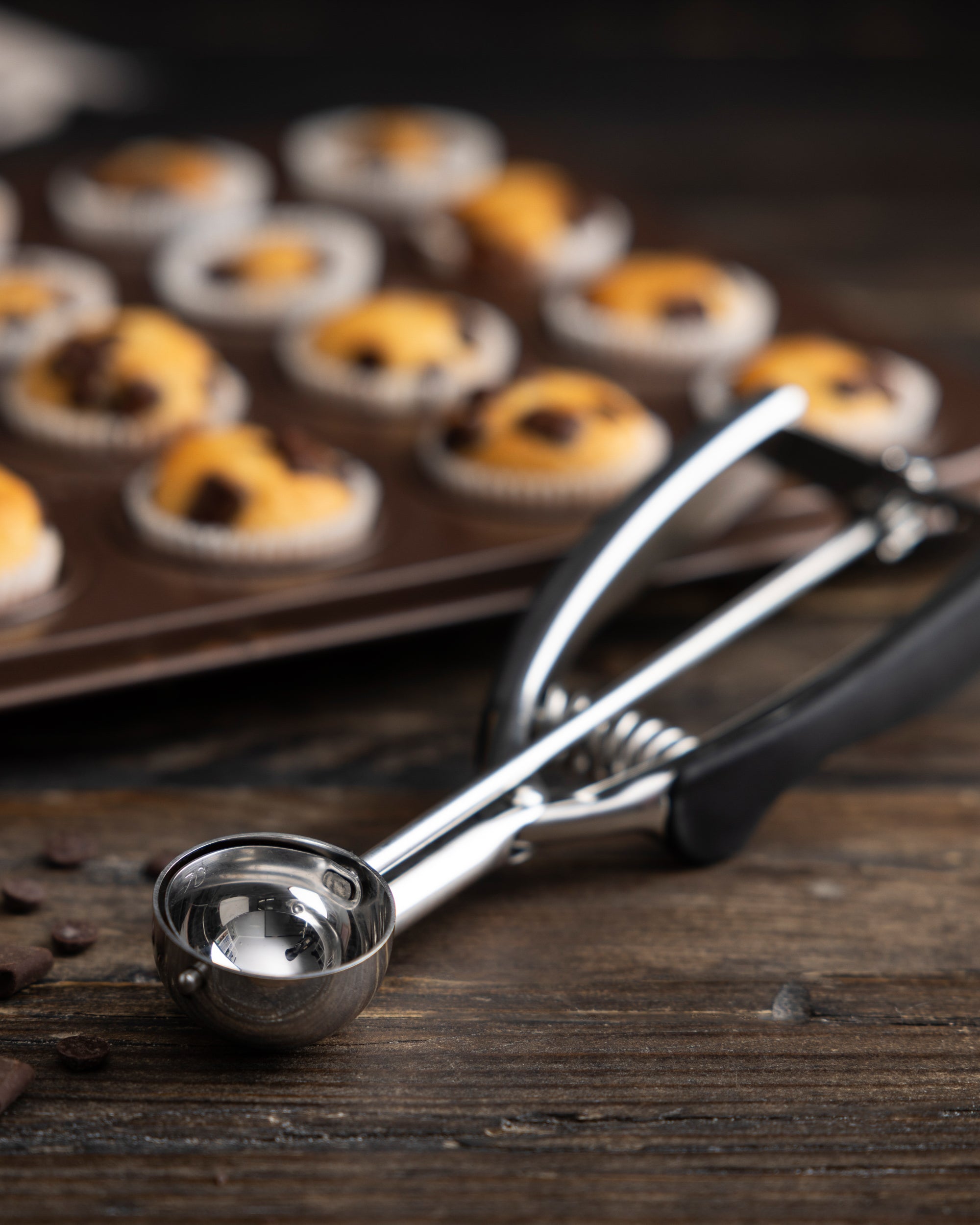 Meine Portionierer verwende ich nicht nur für Eis. Sie eignen sich auch perfekt, um immer die gleiche Menge an Teig für Cookies oder Muffins zu entnehmen oder auch Fleisch- oder Linsenbällchen zu portionieren. Das sieht nicht nur schöner aus, sondern sorgt auch dafür, dass alles die gleiche Garzeit hat.