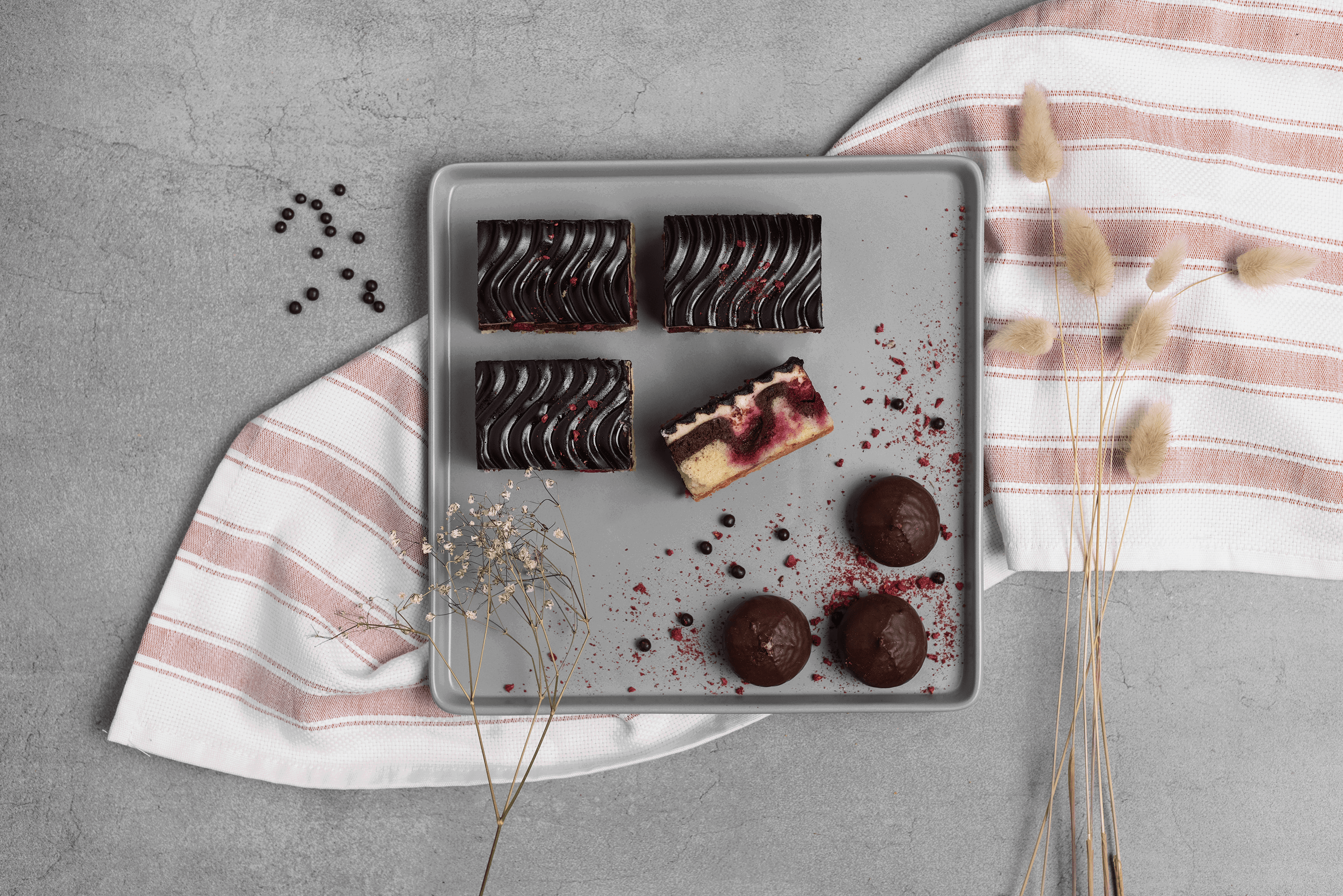 - ideal für: Brownies, kalte und warme Platten in kleineren Mengen, Kuchen- und Tortenschnitten