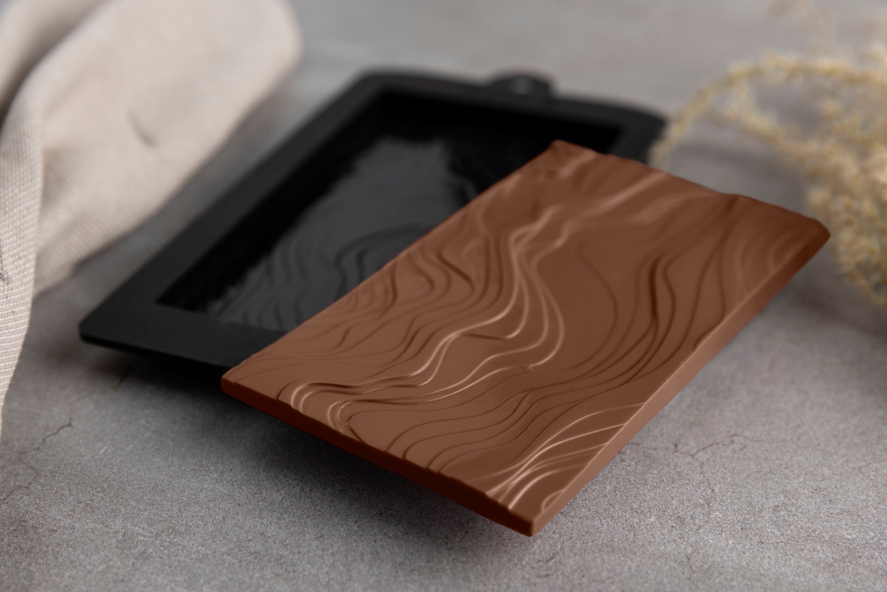 Eine Schokoladenform für Schokolade in Wellenoptik